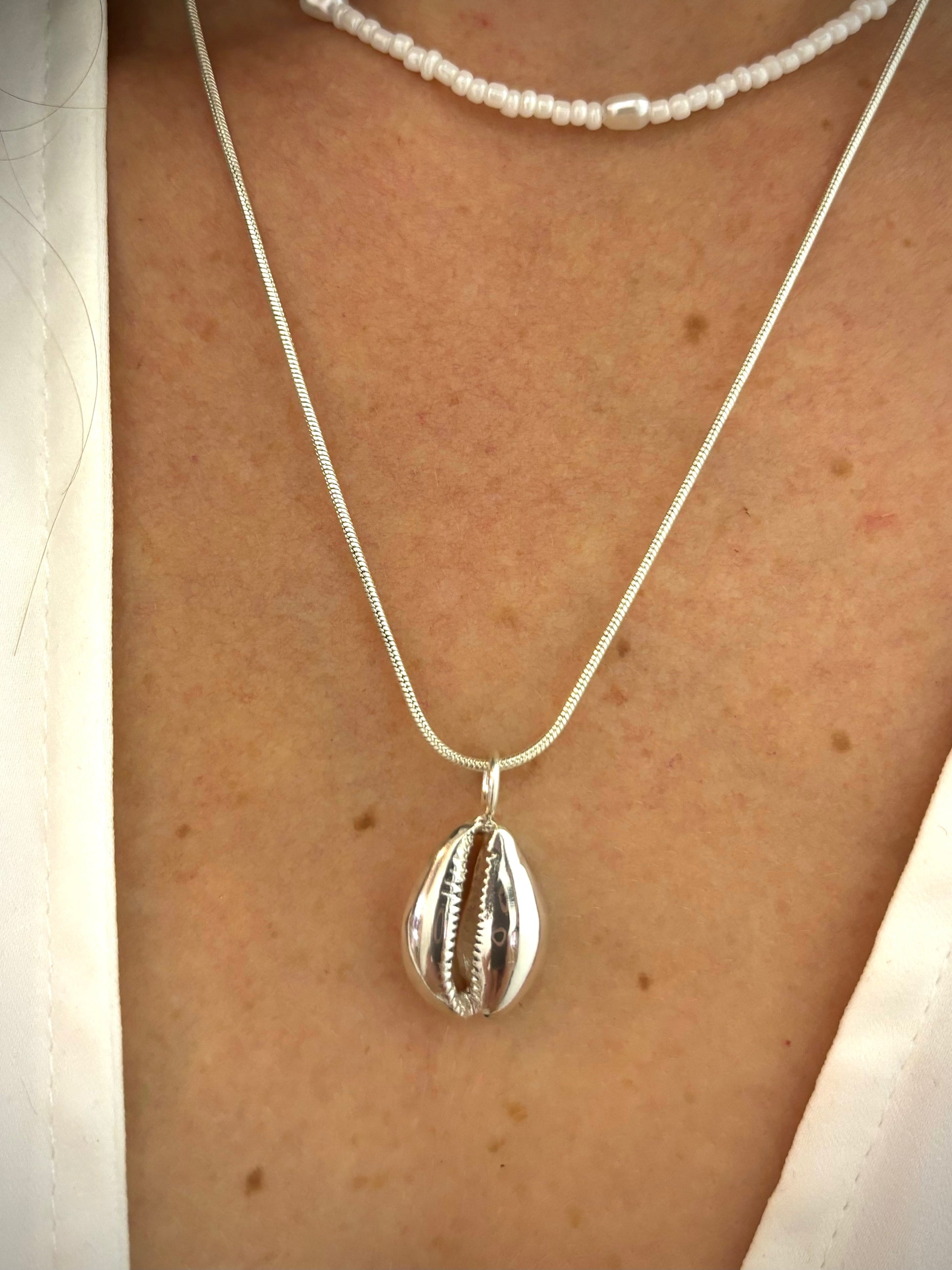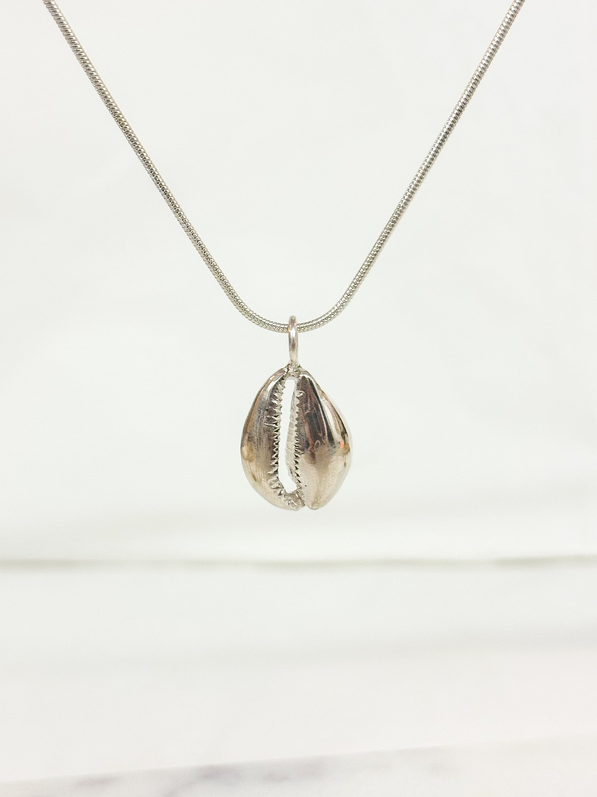 A symbol of the sea’s beauty, the Cowrie Shell Necklace is a timeless piece cast from a real cowrie shell in solid sterling silver. Its organic shape and smooth curves make it a versatile accessory that effortlessly complements any style.