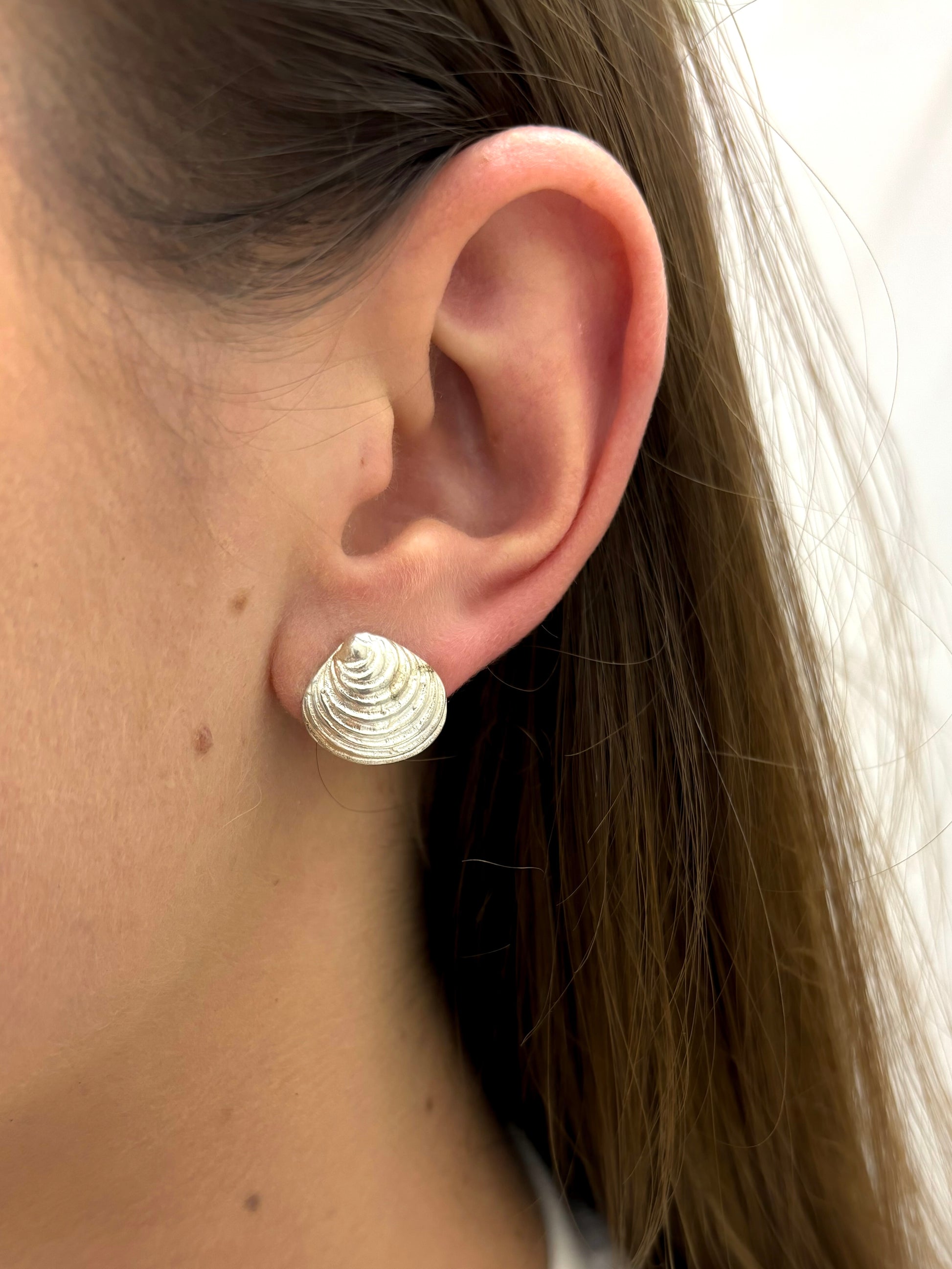 The Venus Shell Earrings are handmade from a delicate Venus shell cast in solid sterling silver. Their simple yet elegant design captures the natural details of the shell, making them the perfect everyday reminder of the ocean.